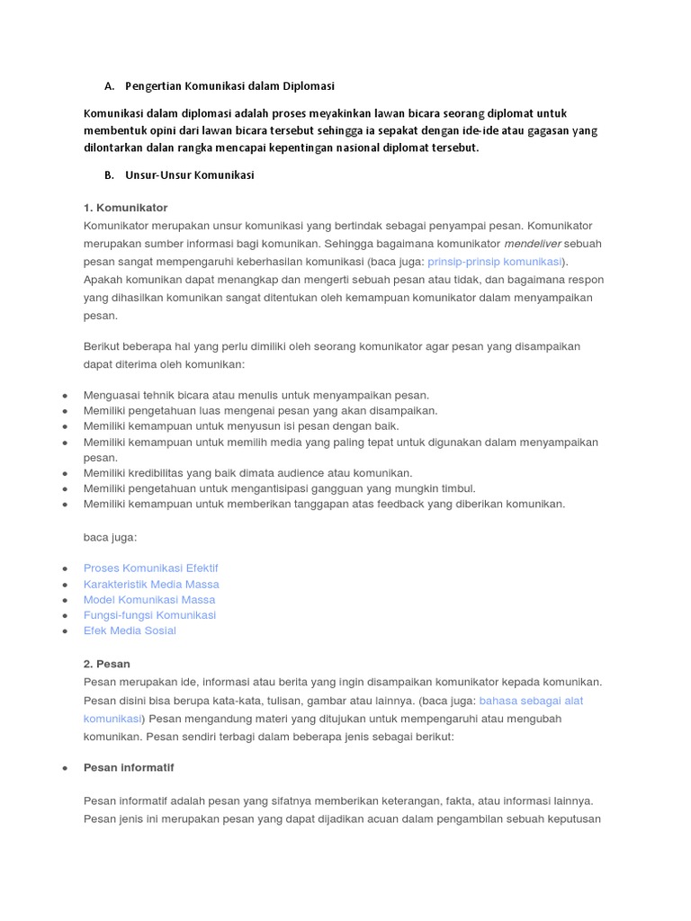 Hakikat diplomasi adalah praktik komunikasi dan negosiasi antara sejumlah perwakilan negara. Indonesia adalah satu dari beberapa negara yang semakin banyak menggunakan teknologi digital dalam diplomasi internasional. Berikut adalah definisi diplomasi menurut beberapa ahli: Diplomasi adalah cara menyampaikan dalam. Diplomasi bilateral adalah diplomasi yang dilakukan dengan negara tertentu saja/antara dua pengertian diplomasi menurut david w ziegler adalah mesin atau alat dari politik luar negeri sebuah. Seolah allah mengajari kita untuk berkata kepada mereka: Namun, apakah hal tersebut diikuti dengan. pengertian diplomasi, fungsi, tujuan dan ruang lingkupnya menurut para ahli.