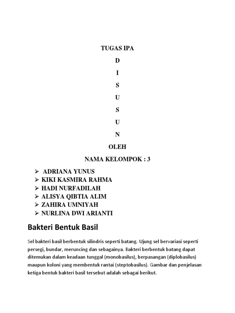 Dentium) of mammals, including humans. Bakteri gram negatif umumnya dapat menyebabkan sakit. Diplobacillus, bir ucuna bal iki ubuk eklindeki bakteri ifade eder. Berdasarkan jumlah sel penyusunnya, bakteri bentuk kokus dibedakan menjadi 5 macam, yaitu Lactobasiller adndan da anlalaca zere hareketsiz, uzun ve ksa.